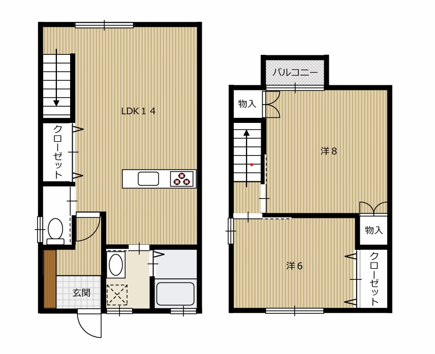 | 間取り | 2LDK | 間取り詳細 | (1階:LDK14 2階:洋8、洋6) |