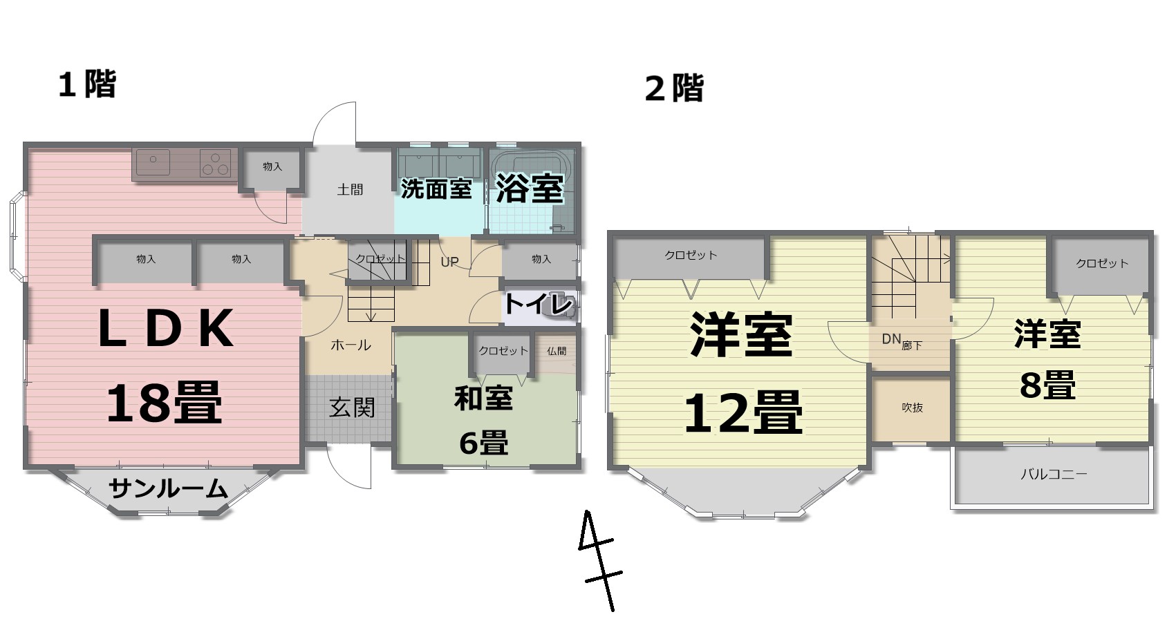 | 間取り | 3LDK | 間取り詳細 | (1F:18LDK、和6 2F:洋12、洋8) |